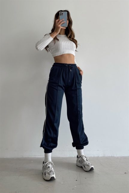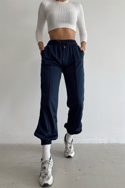 Elastic Waist Highwaist Tracksuit Navy Blue