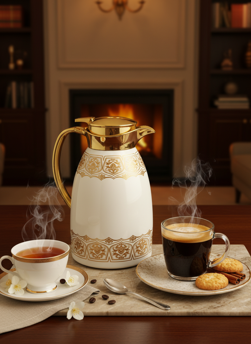 Elegant Gold & White Insulated Thermal Carafe for Coffee & Tea