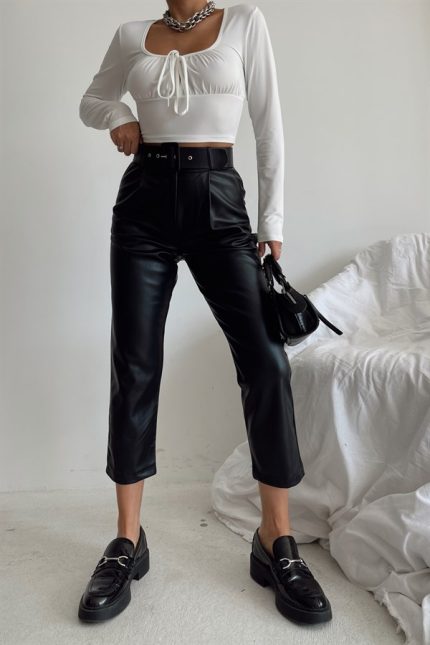 Belted Leather Trousers Black