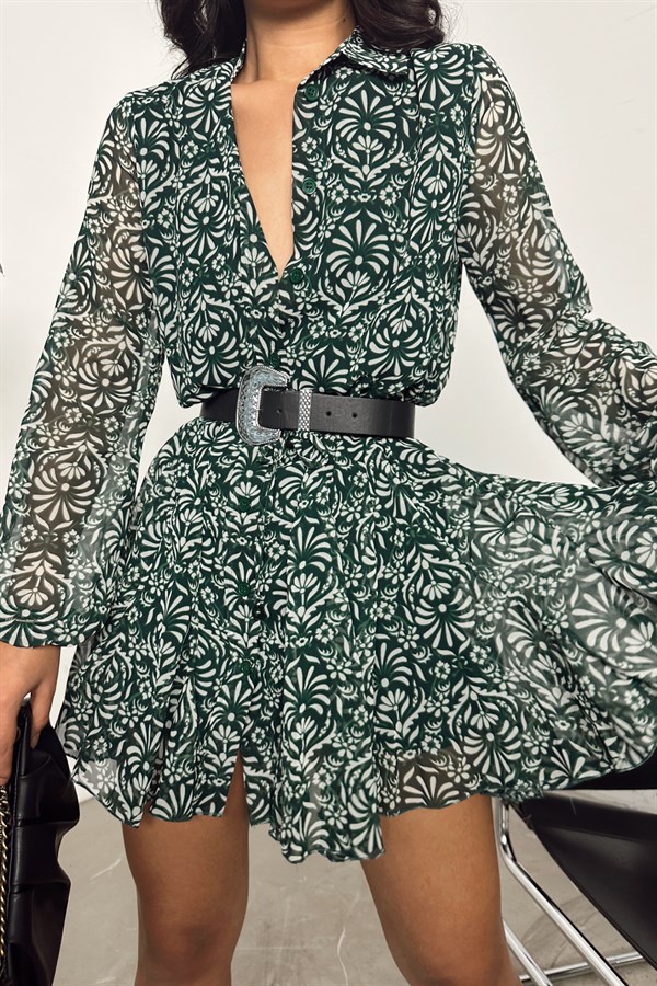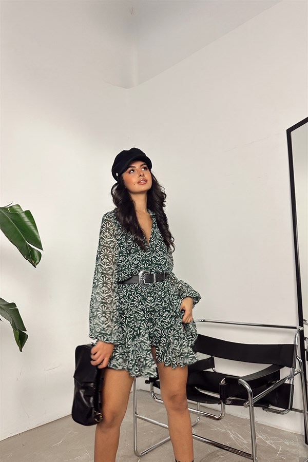 Belted Flower Dress Green -28300