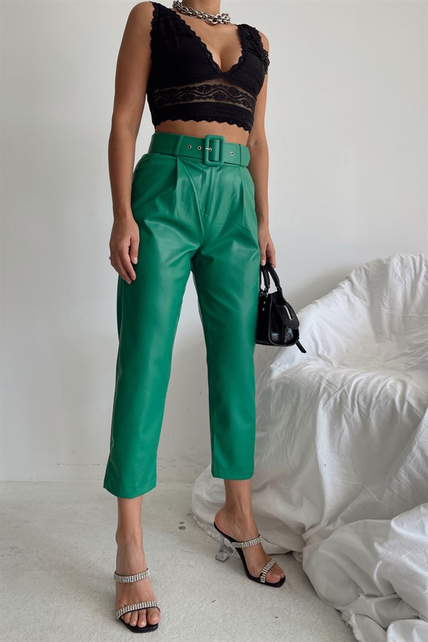 Be the first to review “Belted Leather Pants Green” Cancel reply
