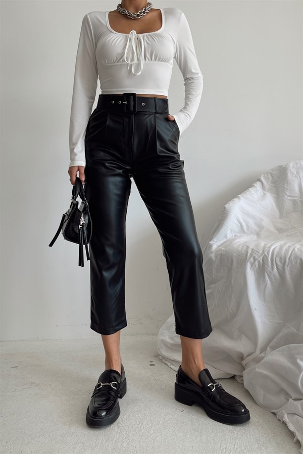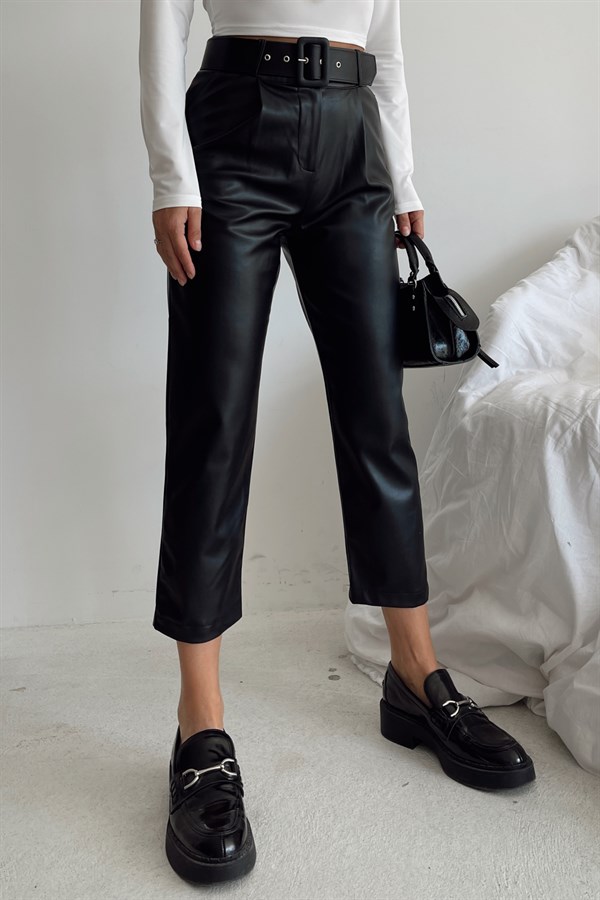 Be the first to review “Belted Leather Trousers Black” Cancel reply