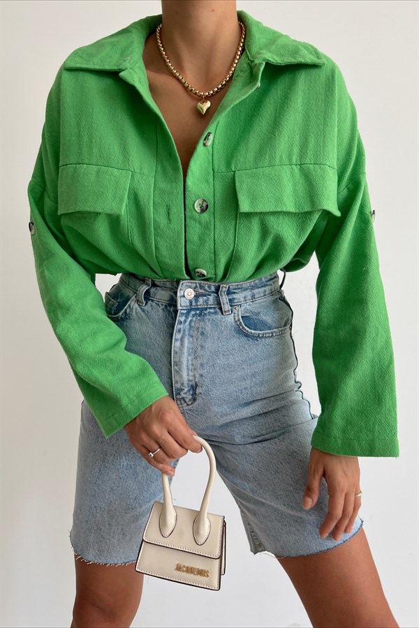 Be the first to review “Bone Button Pocket Detailed Shirt Green” Cancel reply