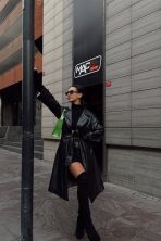 Be the first to review “Colorful Lined Leather Trench Coat Black” Cancel reply