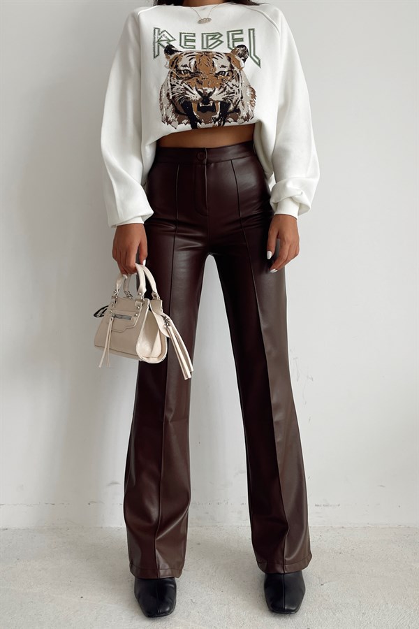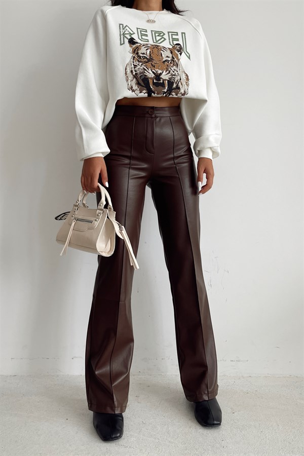 Be the first to review “Front Stitch Detail Leather Palazzo Brown” Cancel reply