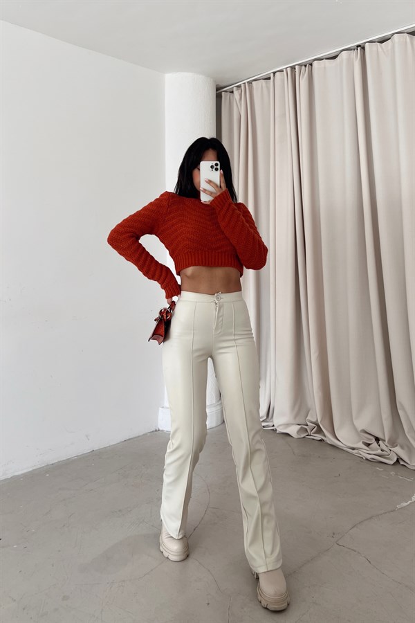 Be the first to review “Front Stitch Detail Leather Palazzo Cream” Cancel reply