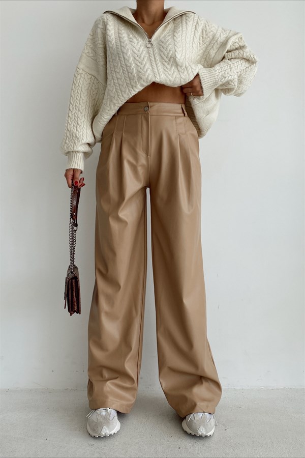 Be the first to review “High Waist Leather Pants Beige” Cancel reply