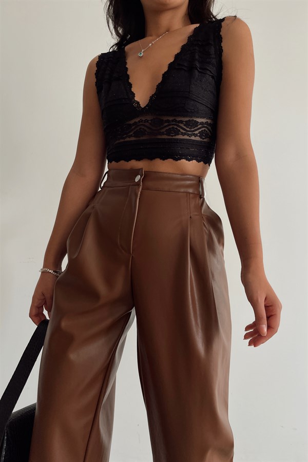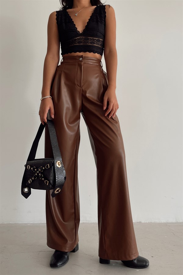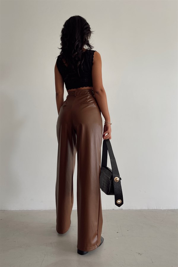 High Waist Leather Pants Brown -11715