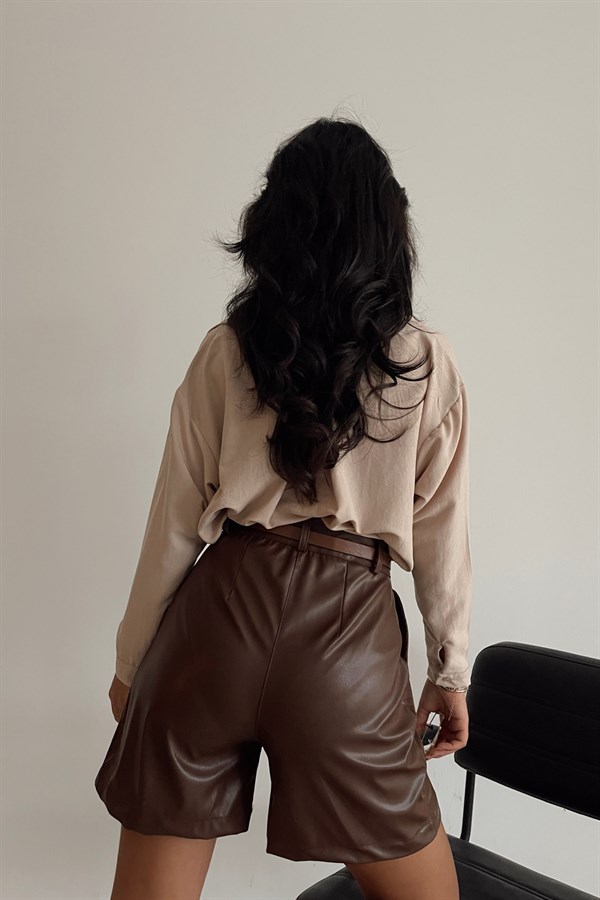 High Waist Leather Shorts Taba -25132