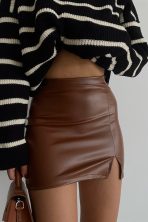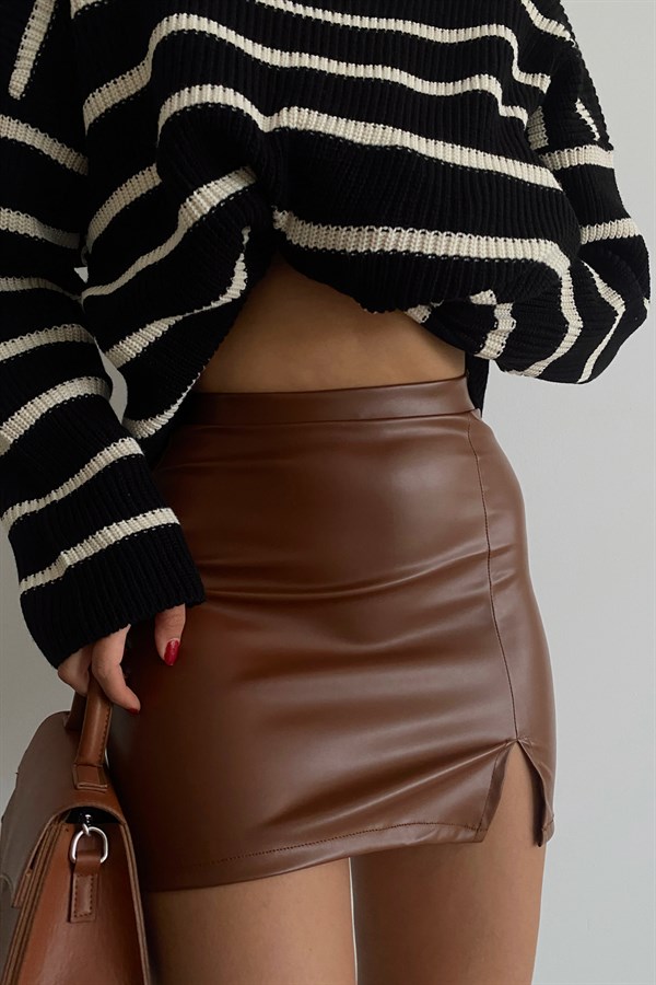 We love long, midi or mini skirts. Skirt models that you can easily choose in the office and in daily style will be your favorite in the new season. Skirt models, which you can complement with stylish crop tops and blouses, have remarkable details. The Slit Mini Leather Skirt included in this category will be an indispensable part of your combinations.