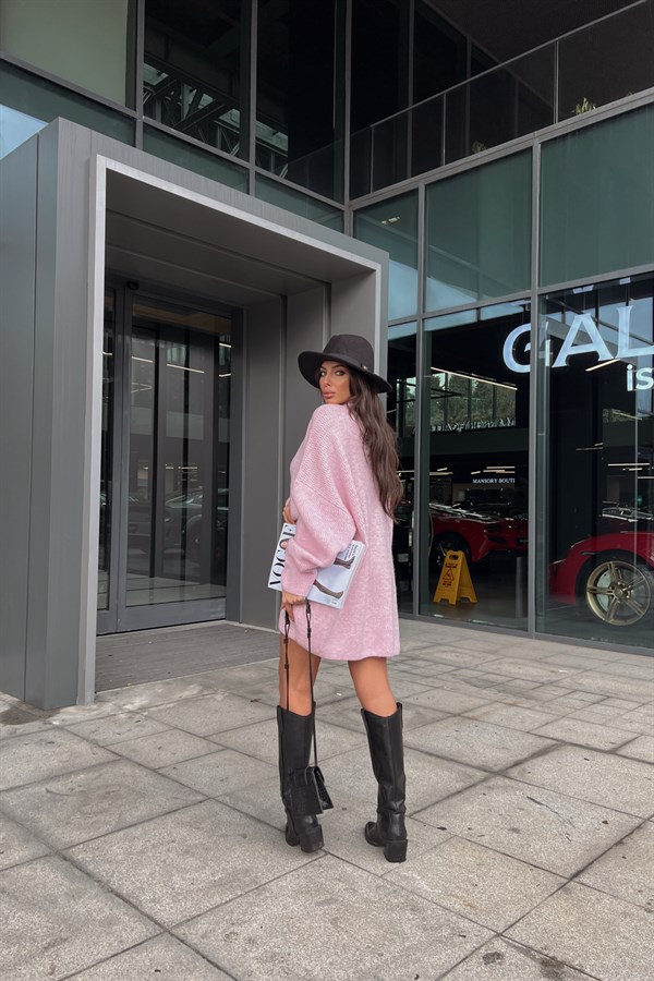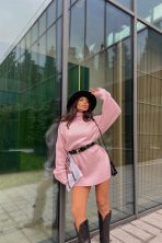 Stand Up Collar Knitwear Tunic Dress Pink -28299