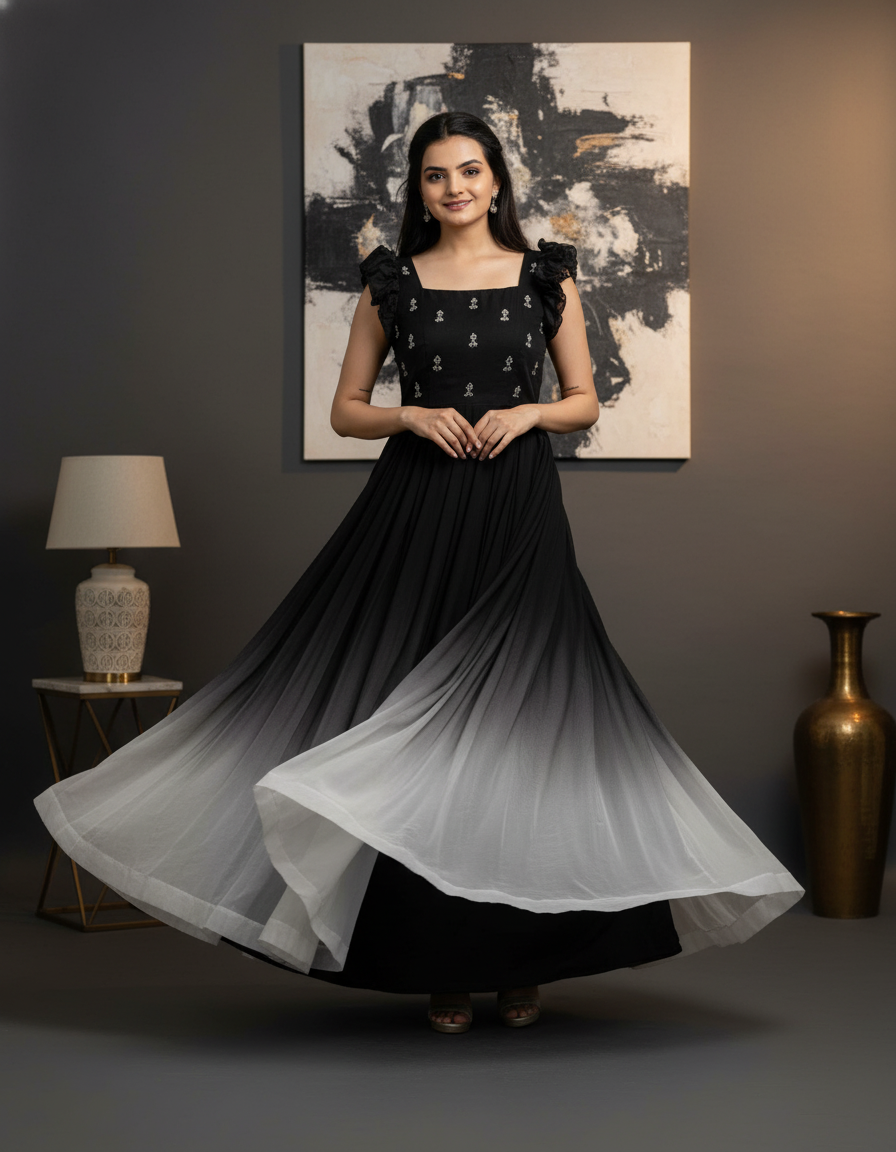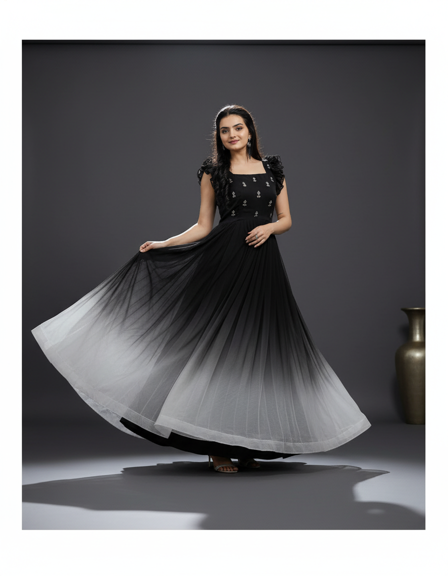 Elegant Ombre Black & White Gown for Women – Perfect for Evening Wear & Parties